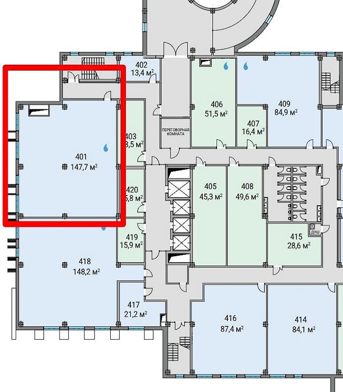 Высота потолков: 2,6 м Мокрая точка: на этаже Душевые кабины для сотрудников>