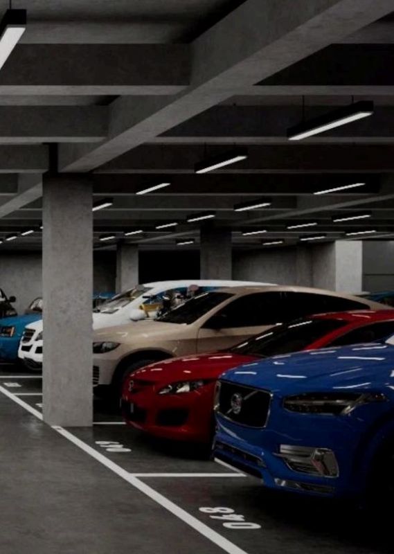 Подземный паркинг, включающий места для мототранспорта, зоны хранения, электрозарядные станции, и лифт в подвальный уровень